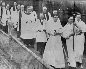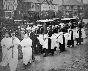 A section of the choir Procession arriving at St. Martin’s Church, Sherwood, for the consecration by the Bishop of Southwell
